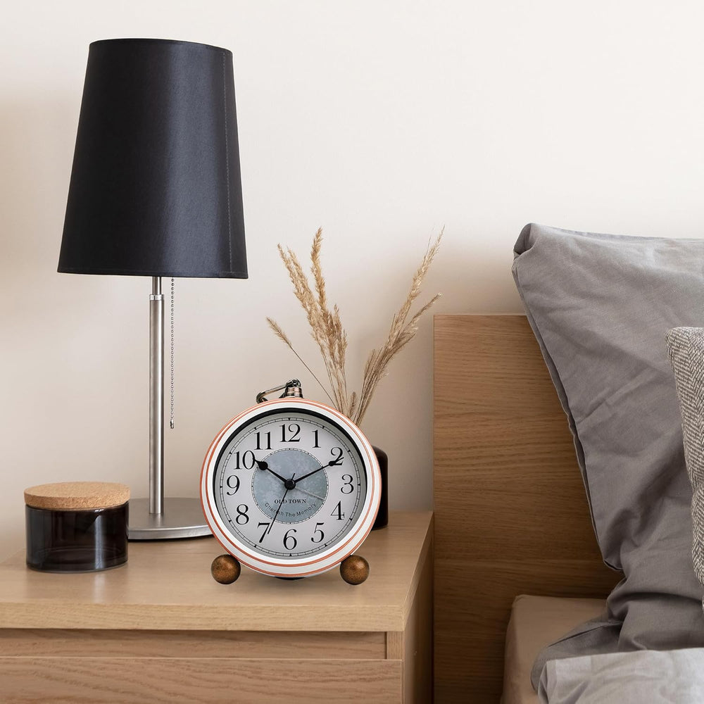 Lafocuse Metall Wecker Beige, Grosser Wecker Lautlos Ohne Ticken, Antik Retro Wecker, Vintage Tischu