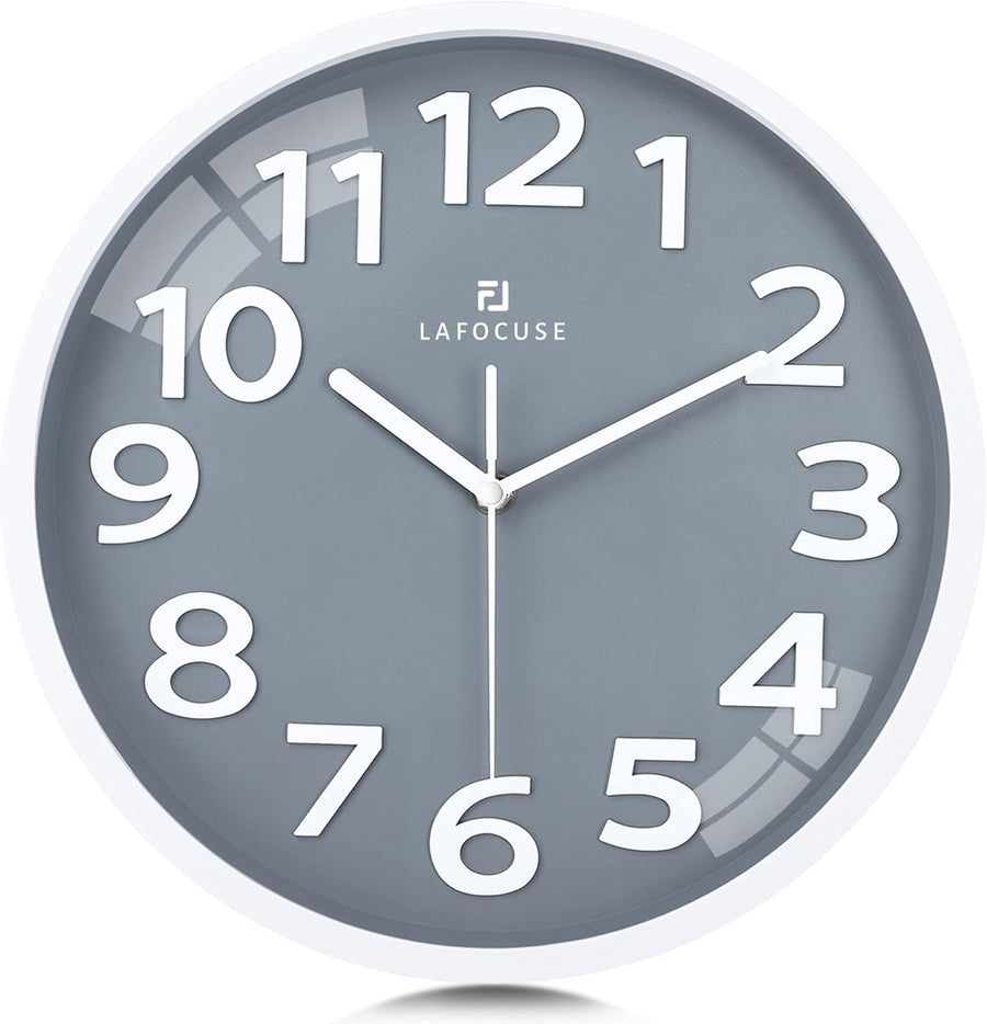 Lafocuse 3D Ziffern Lautlos Wanduhr Grau, Modern Wanduhr 30cm Leicht zu Lesen, Ohne Ticken Geräuschl