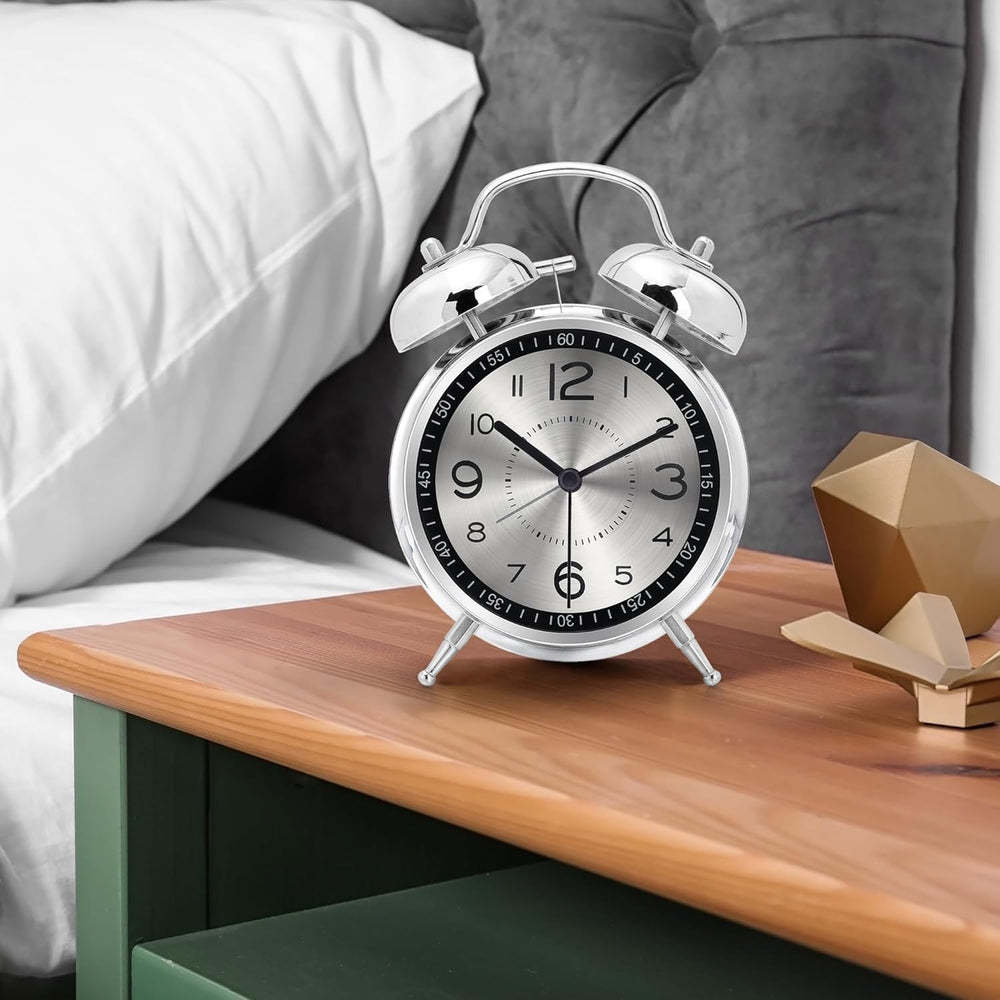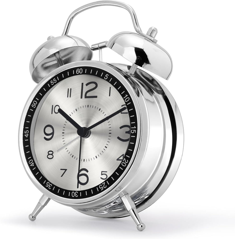 Lafocuse Doppelglockenwecker 16cm Analog Ohne Ticken, Metall Silber Wecker mit Grosses Zifferblatt,