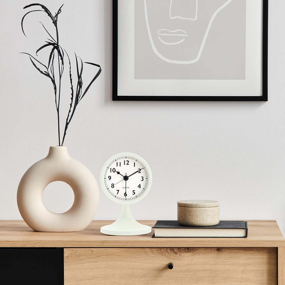 Lafocuse Metall Wecker Weiss Retro Klassisch, Wecker Lautlos Ohne Ticken mit Nachtlicht und Schlumme