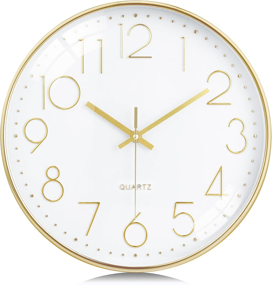 Lafocuse 3D Ziffern Lautlos Wanduhr Gold, 30cm Modern Ohne Tickgeräusche, Quartz Wanduhr Analog Leic