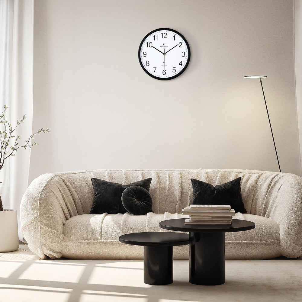 Lafocuse Funk Wanduhr Lautlos 30cm, Modern Funkuhr Hohe Genauigkeit, Schwarz Einfach zu Lesen Wanduh