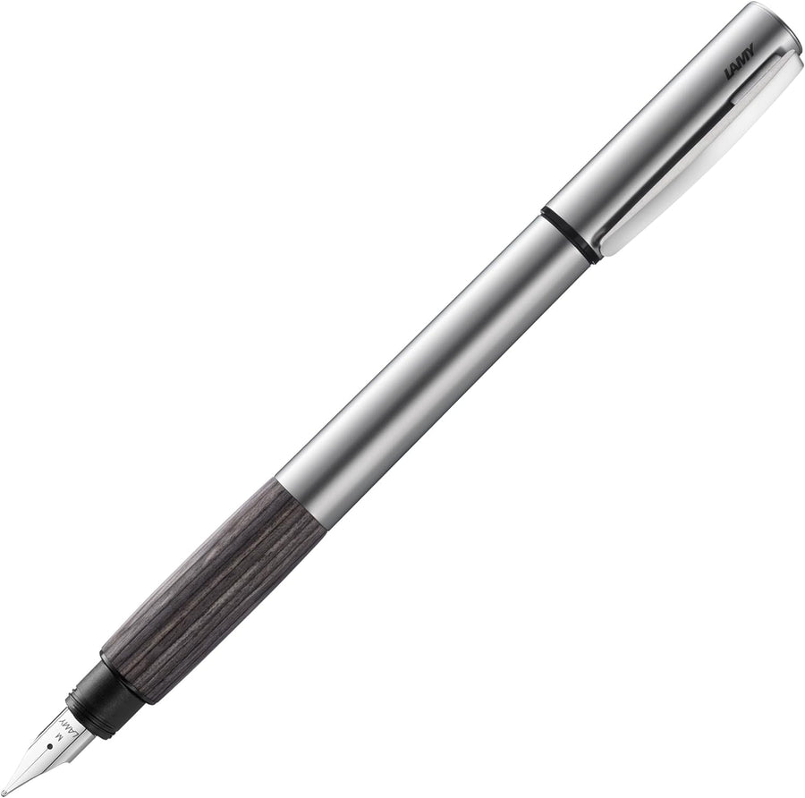 Lamy accent Füllhalter 096 – Füller aus Aluminium mit austauschbarem Griffstück aus braunem Holz und