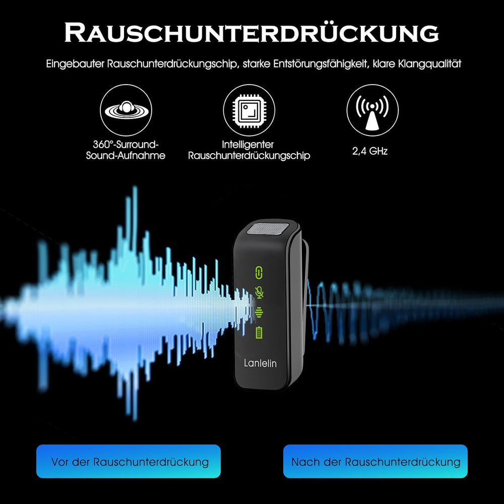 Lavalier Mikrofon Wireless for iPhone Android, Aktive Geräuschunterdrückung Plug&Play Mini Ansteckmi