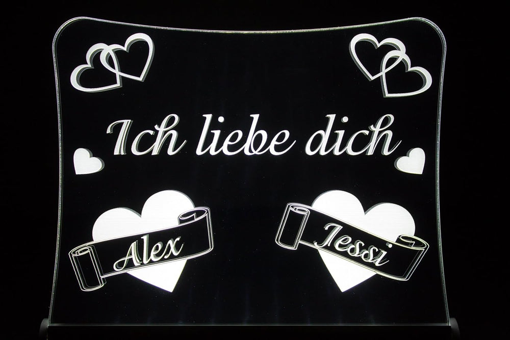 LED Acrylglas Schild"Ich liebe dich", 30x20 cm, mit persönlicher Laser Gravur (weiss), weiss