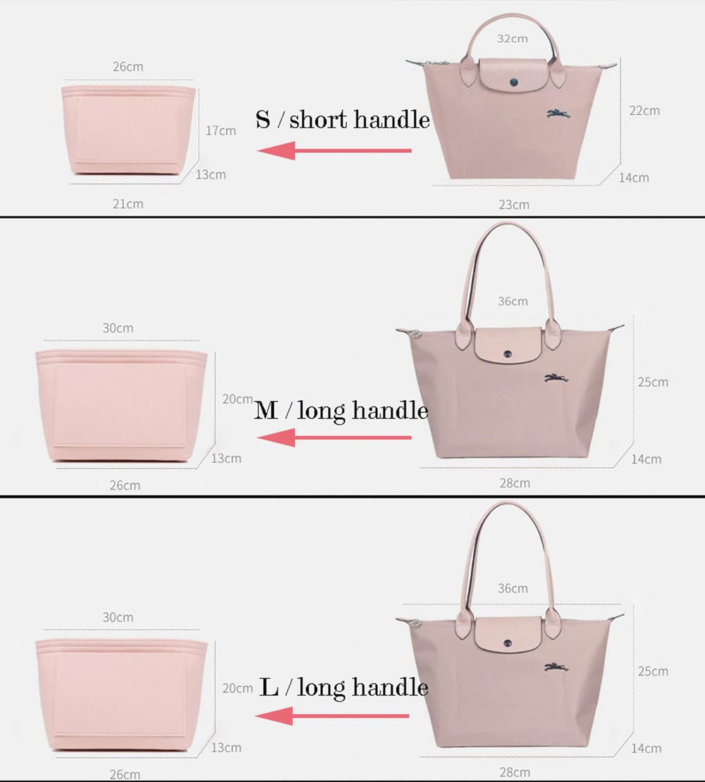1028pink-M AG Tragetasche für Longchamp Le Pliage, grosse Tragetasche, Filz, Geldbörse, Reissverschl