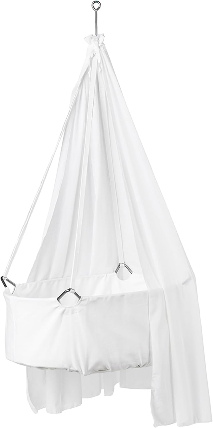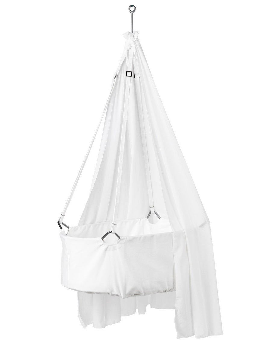 Leander Wiege - Babywiege weiss inkl. Matratze und Deckenhaken - mit Himmel (Schleier) weiss