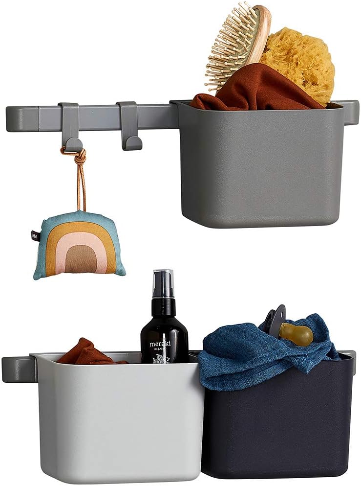 Leander Organisationselemente 3 Stück Boxen, 2 kurze Schienen, 2 Haken, Farbe dusty grey