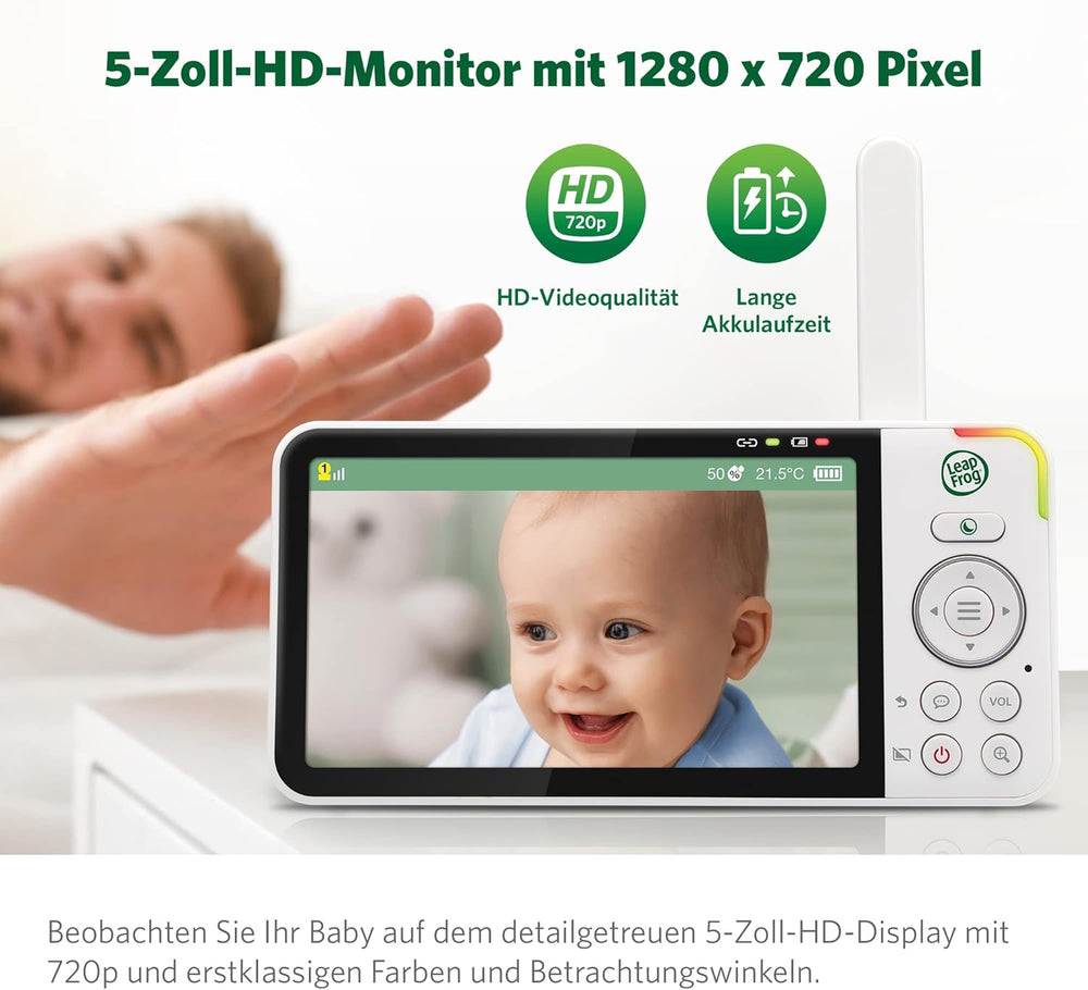 LeapFrog Babyphone mit Kamera und Audio, 5 Zoll Video Baby Monitor, 720P HD IPS-Display Babyfone, VO
