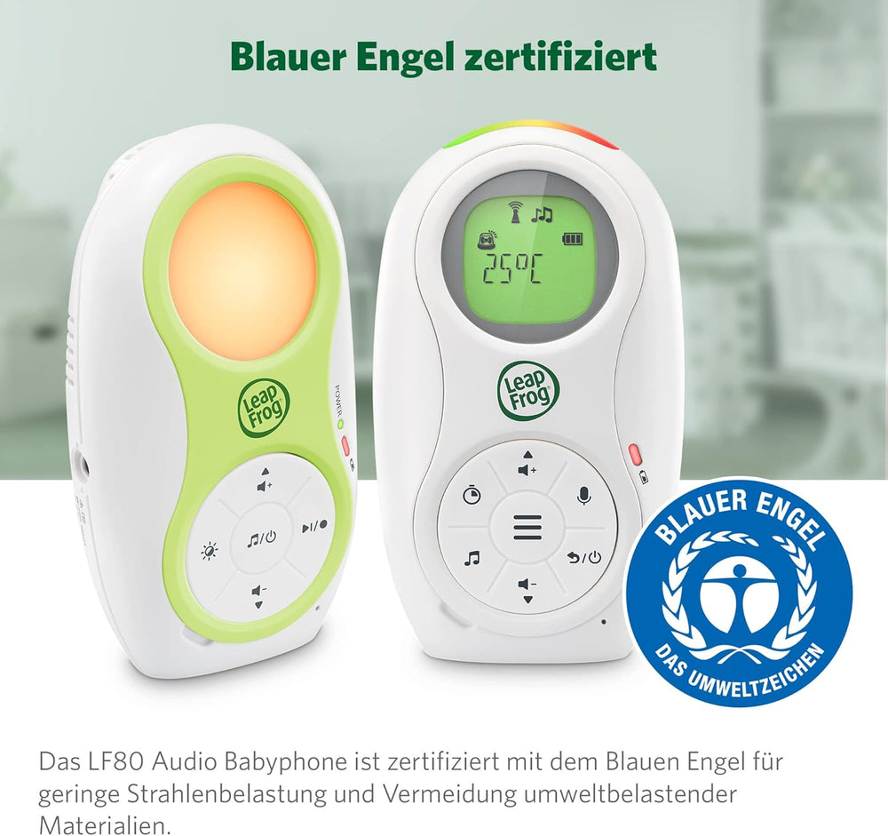 Leap Frog LF80 Audio-Babyphone mit Zwei Akkus, Temperatursensor, Erinnerungsfunktion, Geräuschanzeig