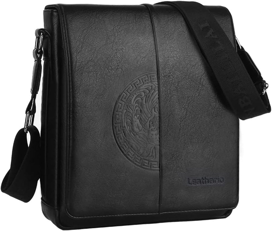Leathario Herren Umhängetasche PU Leder Schultertasche Herrentasche mit Grosser Kapazität für Alltag