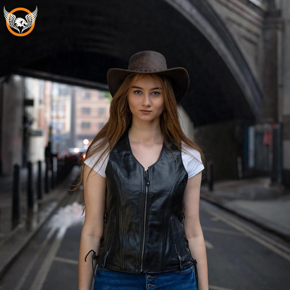 Leatherick Damen Lederweste der echte spitzenkorn-büffel Leder ärmellose jacke / weste schwarz M Sch