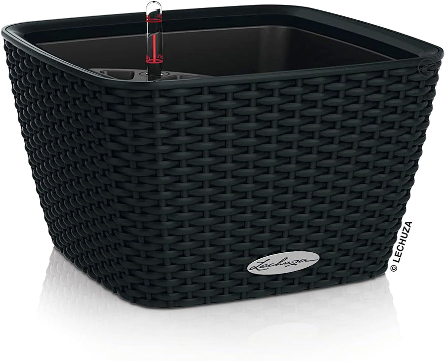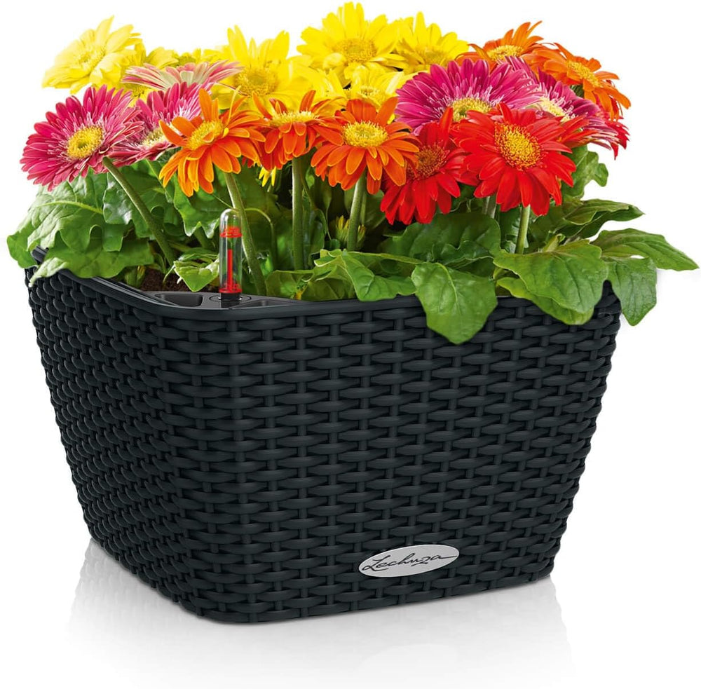 Lechuza CANTO Stone low 40, graphitschwarz, Hochwertiger Kunststoff, Inkl. Bewässerungssystem, Herau