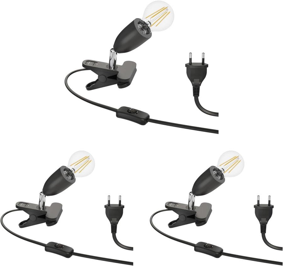 ledscom.de 3x E27 Klemmleuchte LIK, schwarz inkl. E27 LED Lampe 1020lm weiss, 3-Stufen Dimmen ohne D