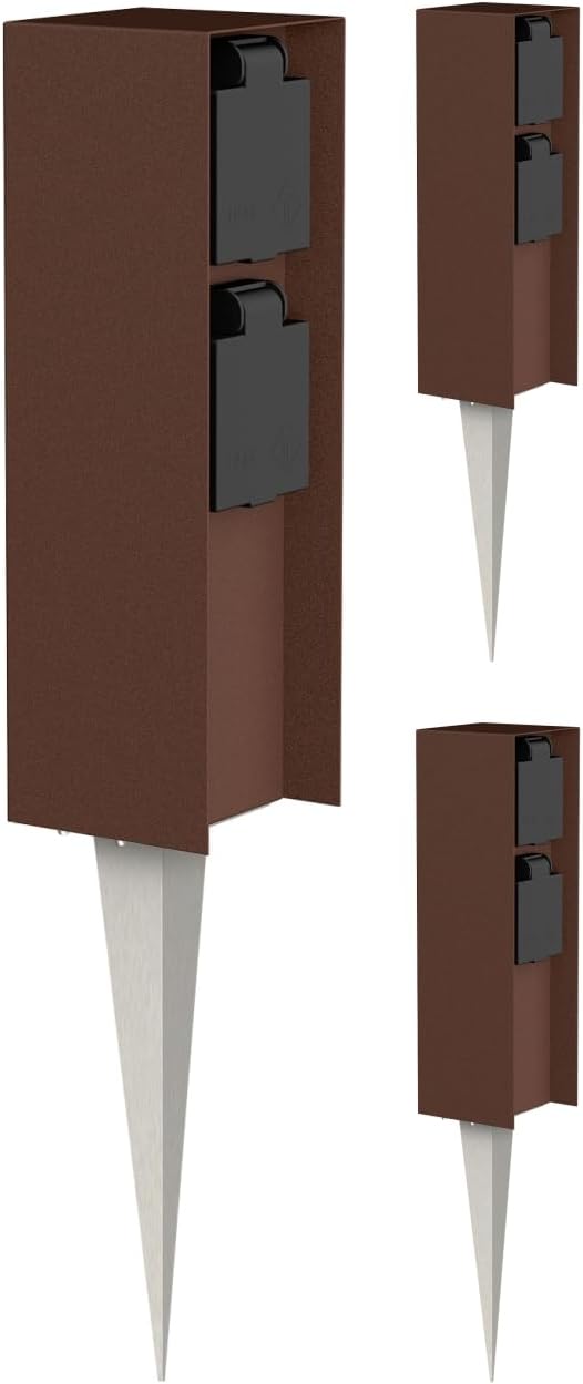 ledscom.de Aussensteckdose POMI mit Erdspiess, wetterfest, IP44, 2-fach, braun, eckig, 23cm, 3 Stk.
