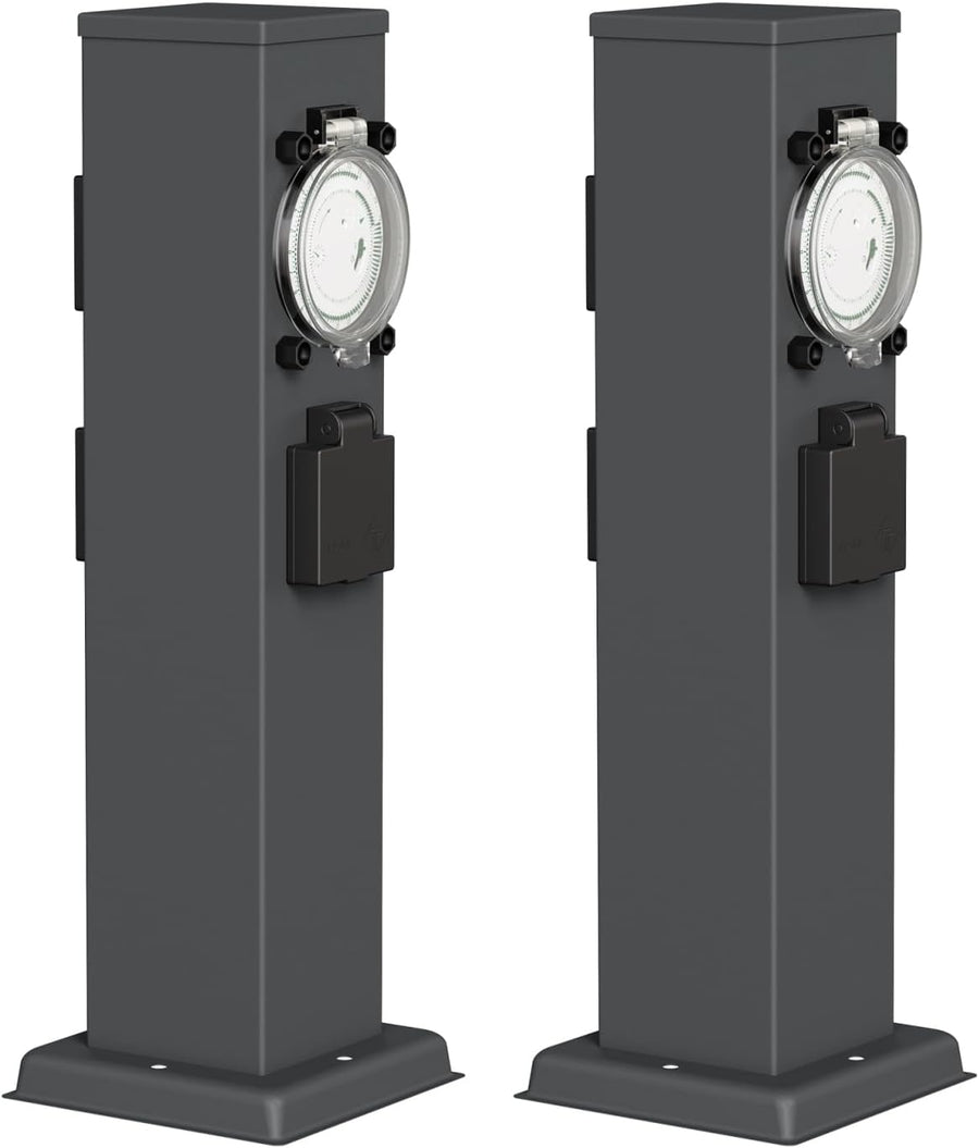 ledscom.de 2X Garten Steckdosensäule POMI für aussen, IP44, Timer/Zeitschaltuhr, 2-Fach, anthrazit,