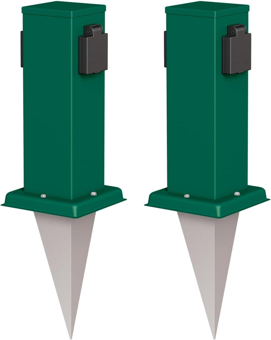 ledscom.de 2X Garten-Steckdosen-Säule Polly mit Erdspiess für aussen, IP44, 2-Fach, grün, eckig, 27c