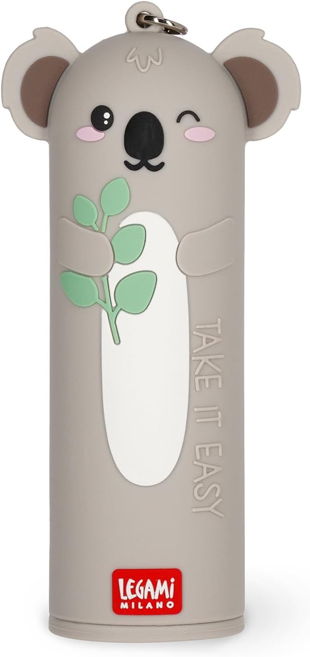 Legami - Kawaii 2-in-1 Schulmäppchen aus weichem Silikon, Tischstifthalter, Reissverschluss, Buntsti