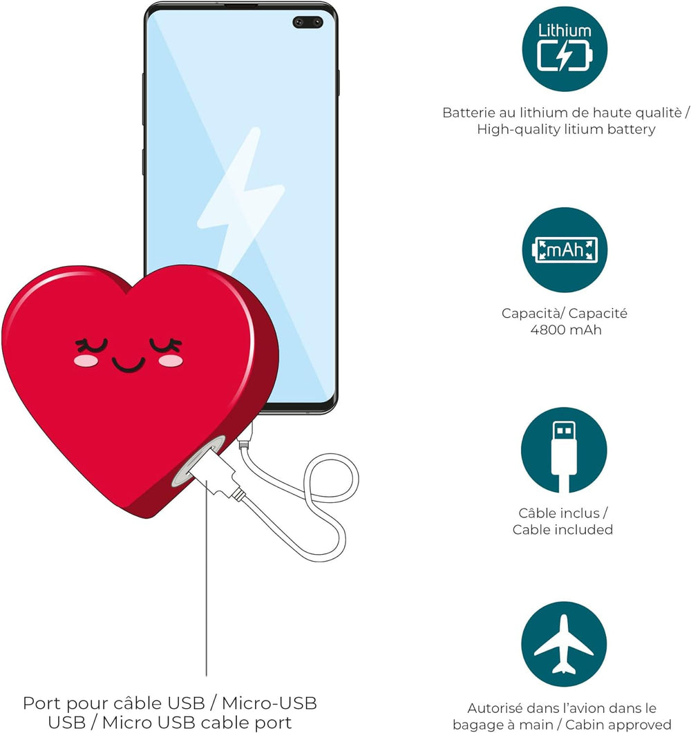 Legami - Tragbares Ladegerät, My Super Power, wiederaufladbarer Akku, 8,8 x 10,6 cm, Thema Heart, US