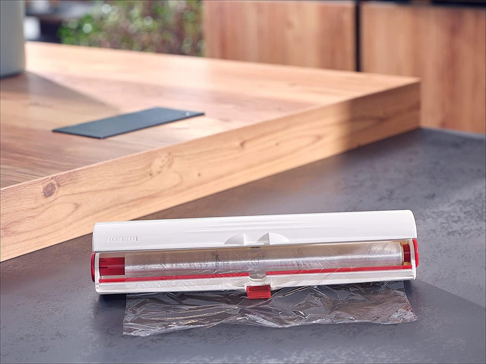 Leifheit Folienschneider Perfect Cut im mobilen Design, Schneidabroller für 33 cm Rollenbreite, Fris