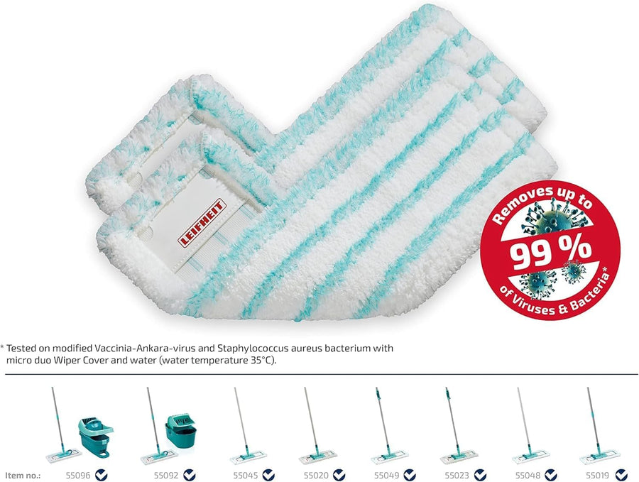Leifheit 2er Set Wischbezug Clean Twist M Ergo micro duo, für alle glatten Böden, Bodenwischer Ersat