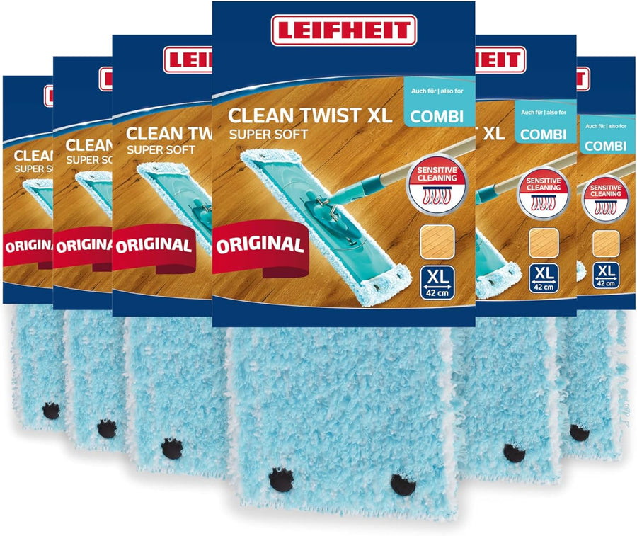 Leifheit Original 6er Set Wischbezug CLEAN Twist XL, super Soft 42 cm, mit Spezialfasern, Wischer Er