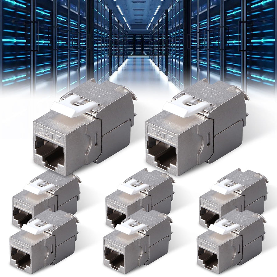 Leikurvo 8 Stück RJ45 CAT7 Keystone Modul Jack Geschirmte Bis zu 10 Gbps, CAT7 Keystone Werkzeuglos