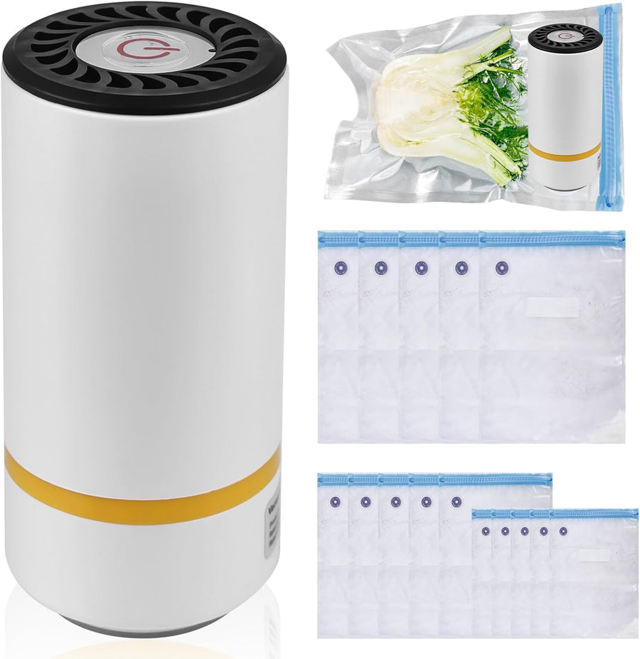 Vakuumiergerät mit 15 Vakuumbeuteln: Vakuumiergerät für Lebensmittel Mini Vakuumiergerät Handvakuumi