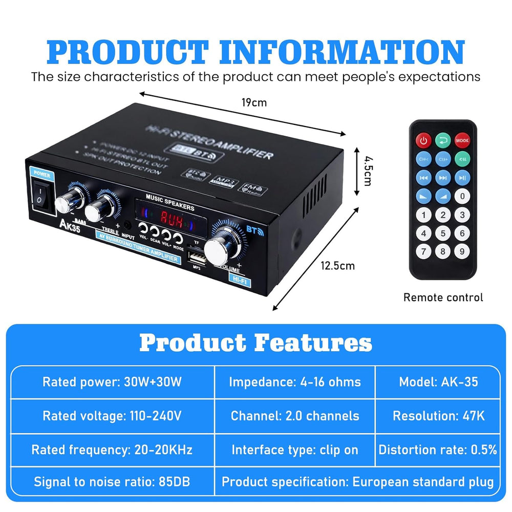 AK35 Hifi Verstärker Bluetooth 5.0 2.0 Kanäle 30W X 2 HiFi Stereo Amplifier Digital Endstufe Endvers