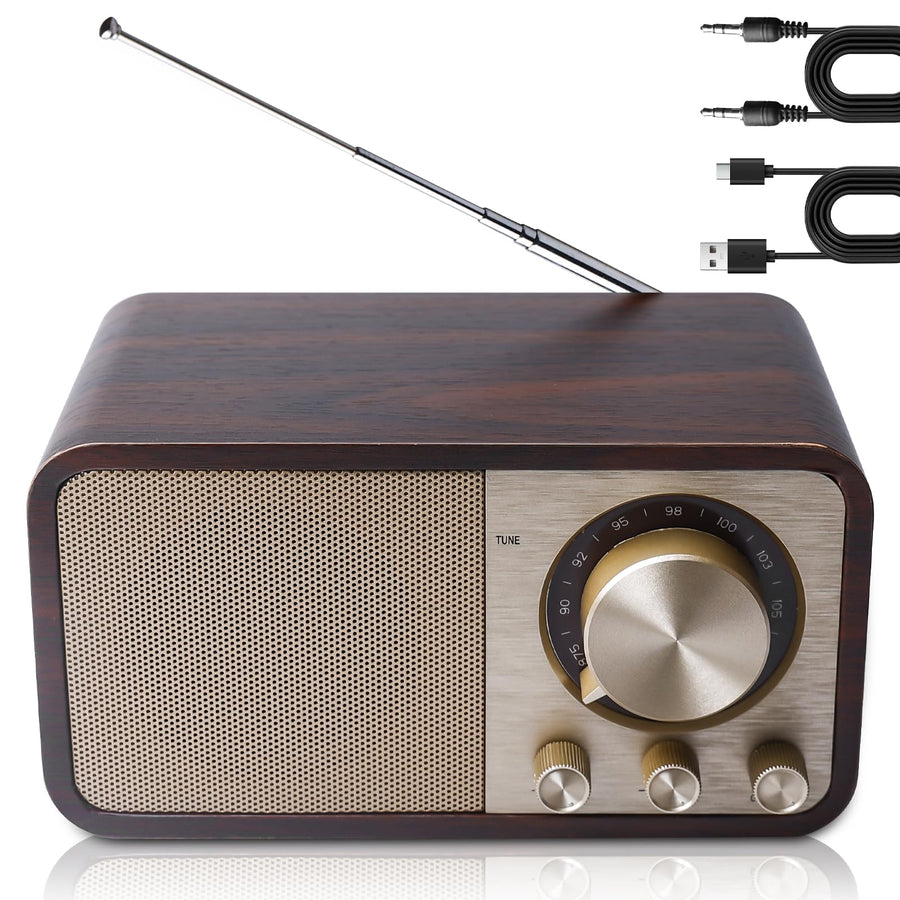 Retro Radio mit Bluetooth, Nostalgie Radio mit 1500mAh Akku wiederaufladbar, USB/TF-Karte/AUX, 5W La