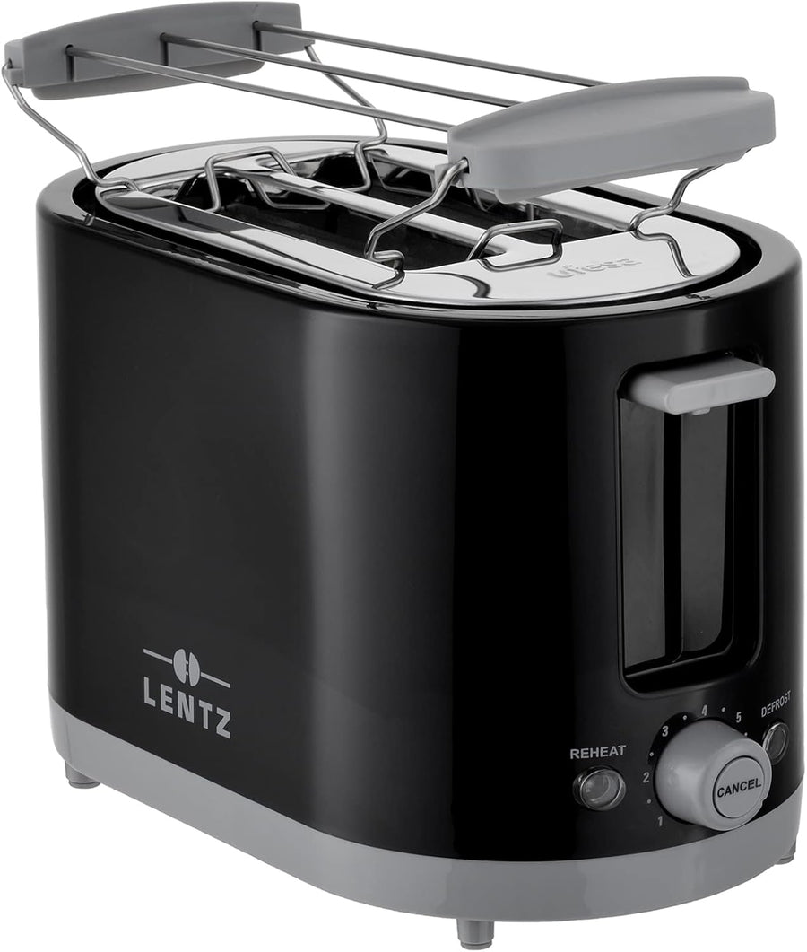 LENTZ 2-Scheiben"COOL TOUCH" Toaster mit Brötchenaufsatz 750 Watt Toastautomat (schwarz), Schwarz