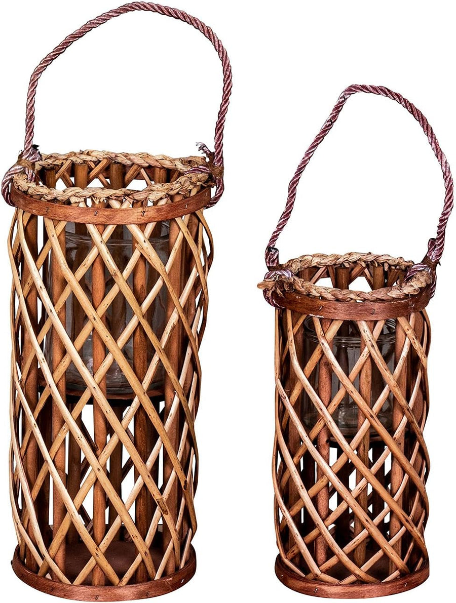 levandeo 2er Set Laterne Windlicht H40cm H31cm Kupfer Braun Holz Weiden-Laterne geflochten Glaseinsa