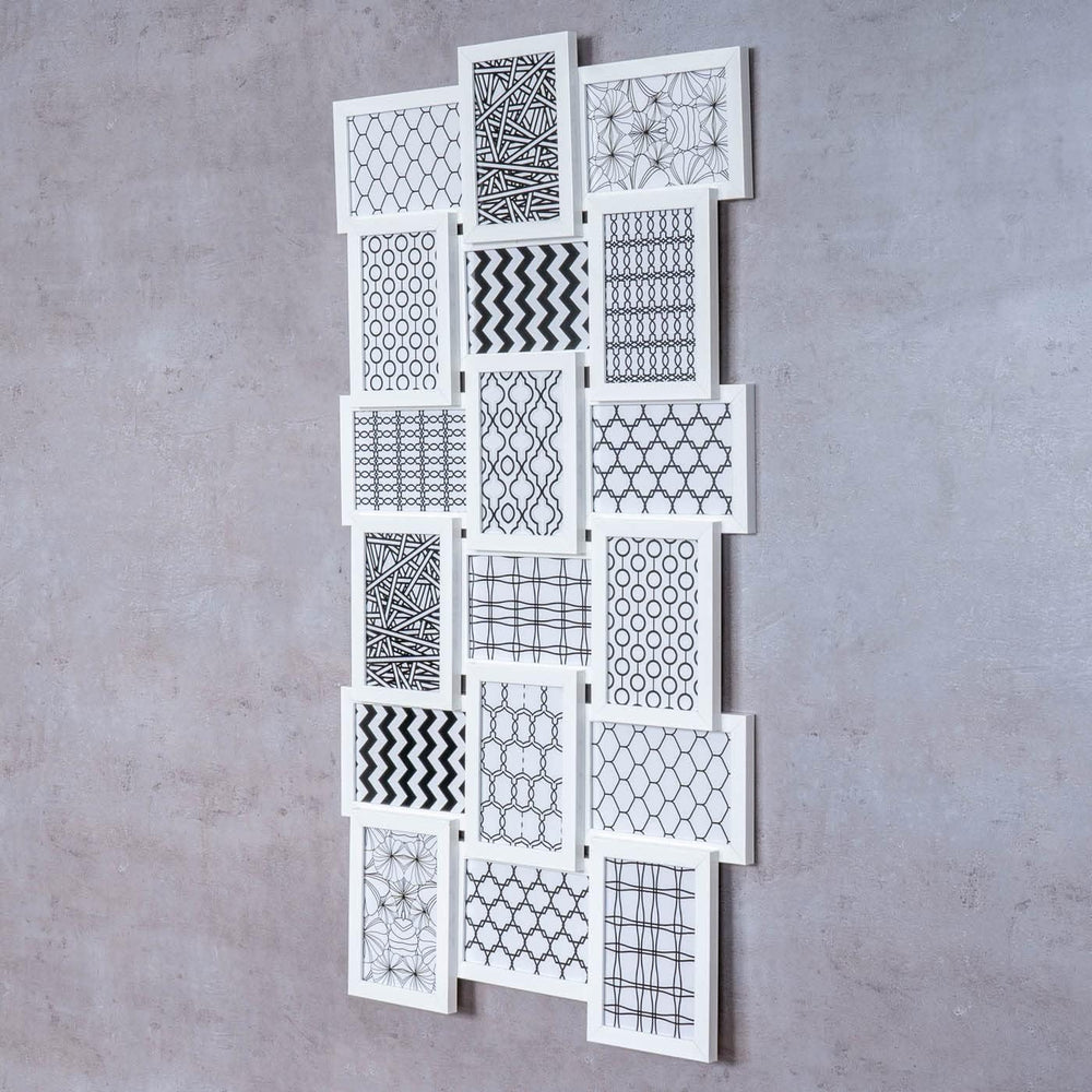 Bilderrahmen 18 Fotos 10x15 Weiss Holz-Optik Nachhaltig Bildergalerie Fotocollage Deko Recycled Coll
