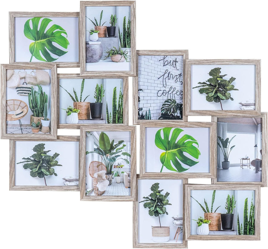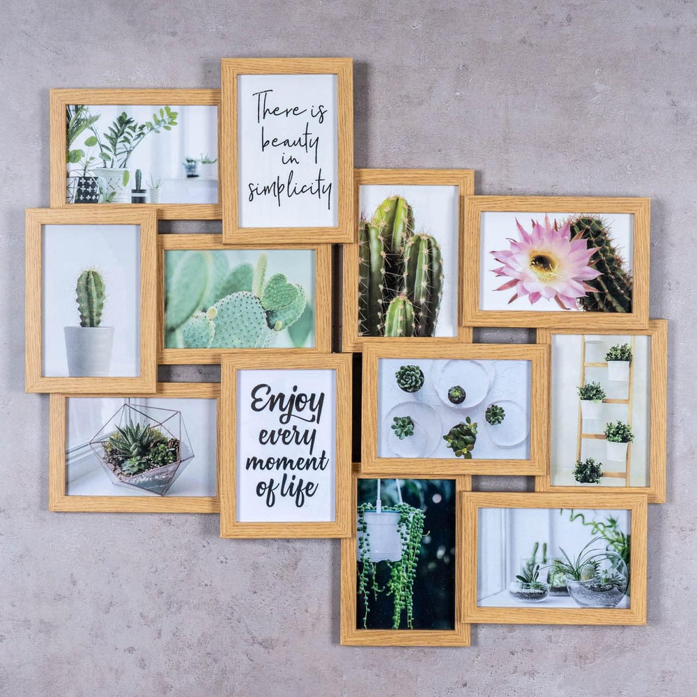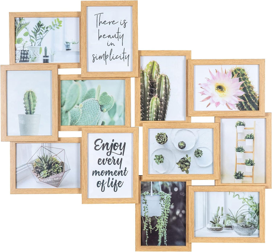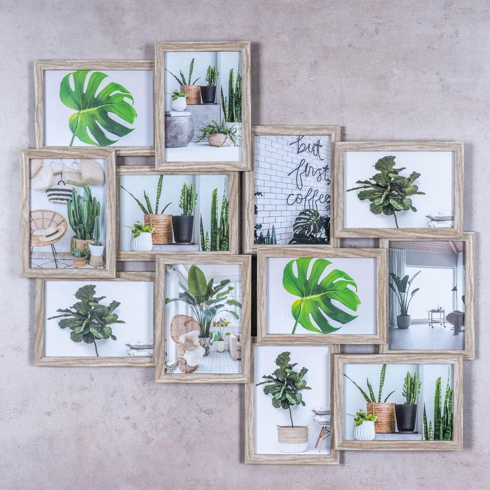Bilderrahmen 58x55cm Collage 12 Fotos 10x15 Eiche MDF Holz Galerie Fotorahmen Bilderrahmen Fotocolla