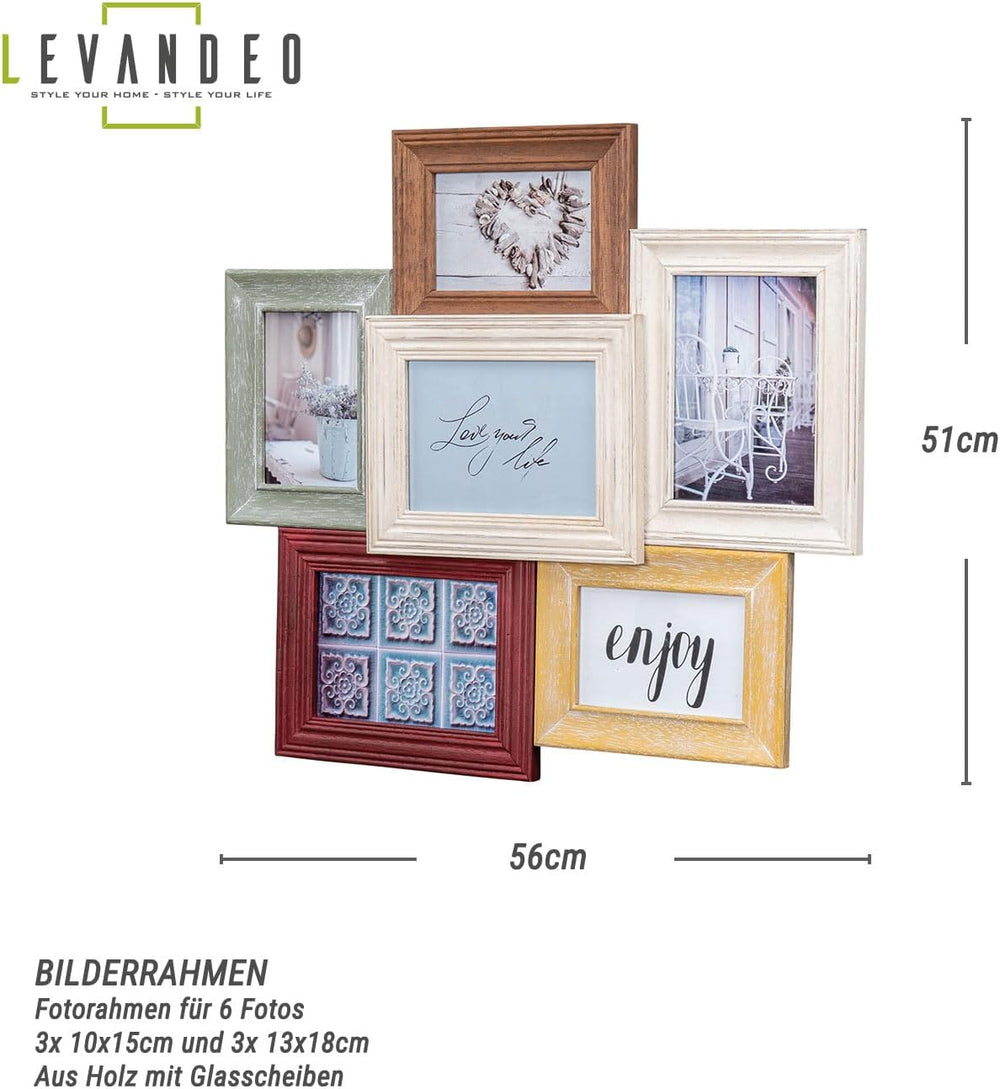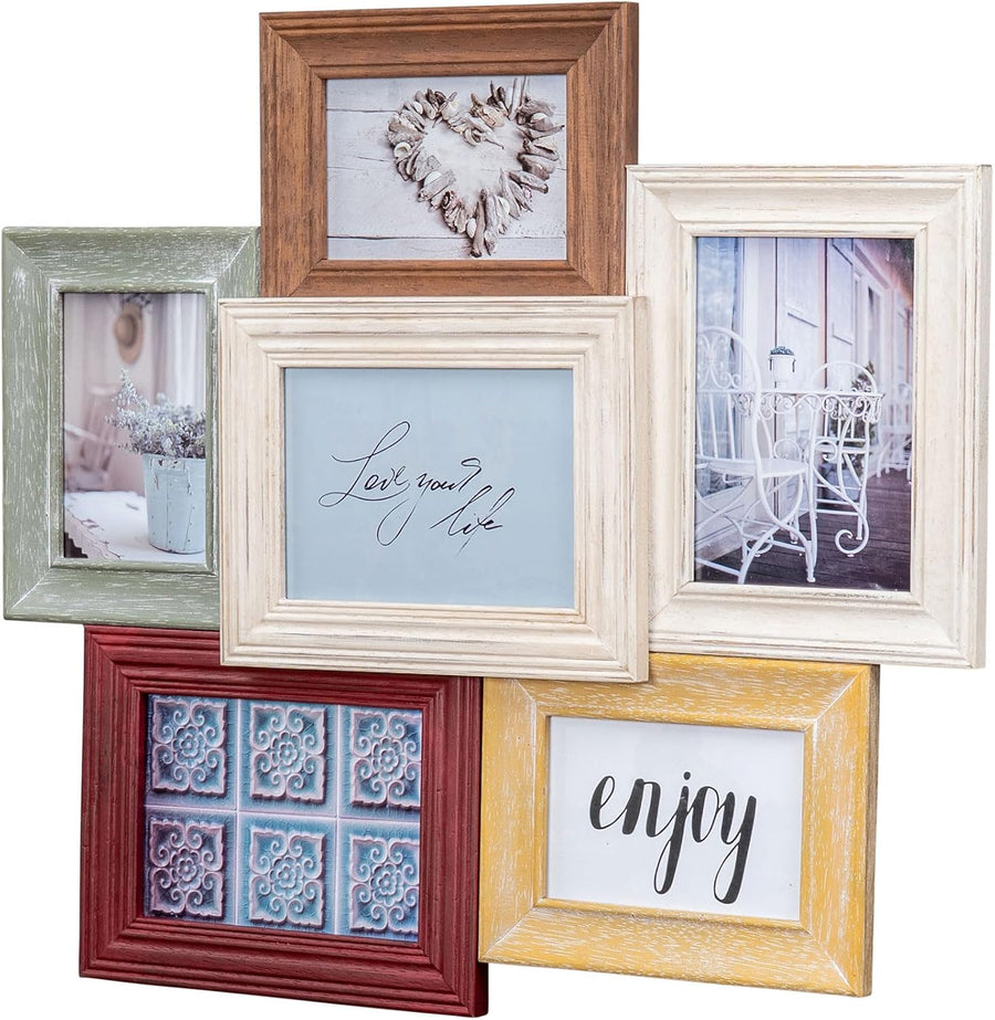 Fotorahmen Antik Collage 56x51cm Echtholz 6 Fotos 10x15 13x18 Shabby Chic Vintage Bilderrahmen Colla