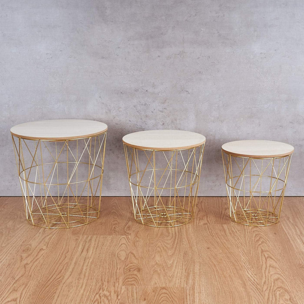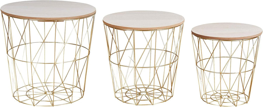 levandeo 3er Set Beistelltisch Metall Metallkorb Drahtkorb Gold Couchtisch Deckel Aufbewahrung Desig