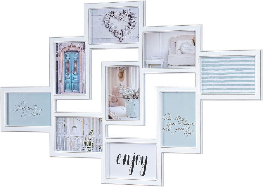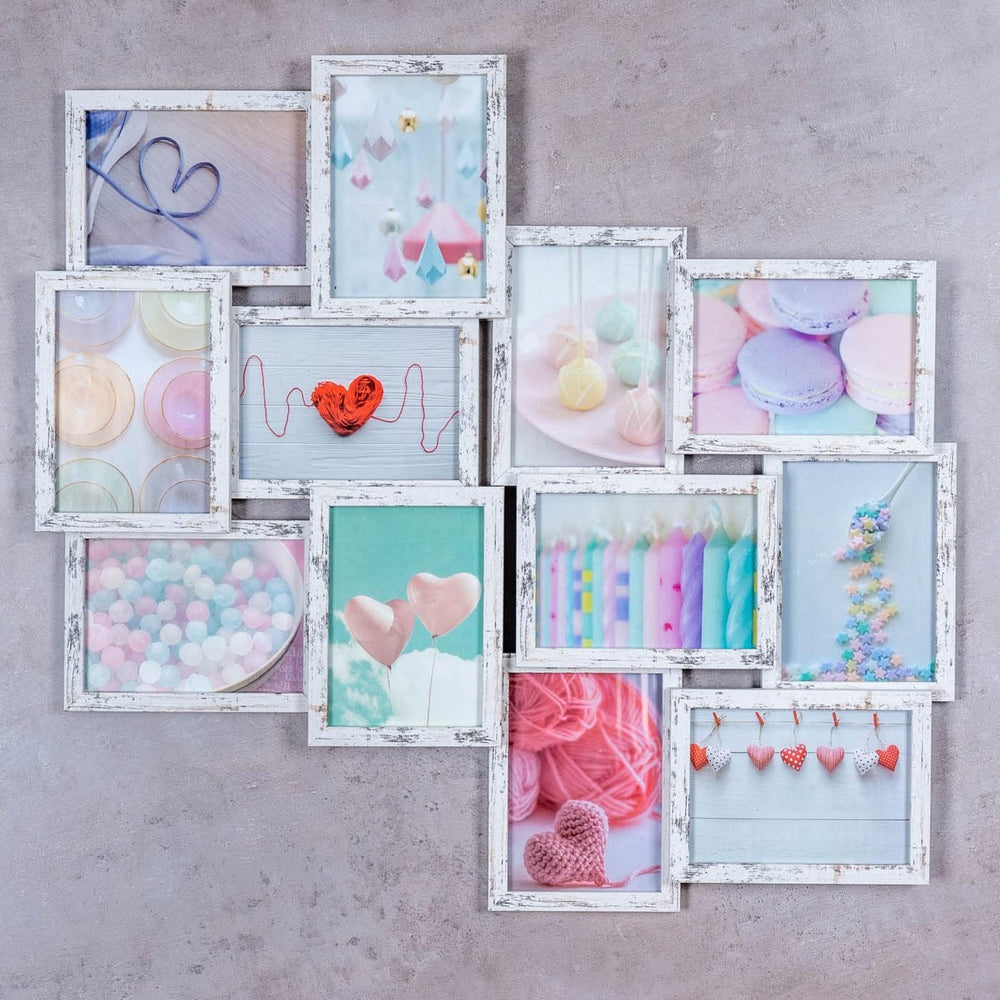 Bilderrahmen 78x52cm 9 Fotos 10x15 Weiss Holz Fotorahmen Shabby Chic Vintage Collage Galerie Wohndek
