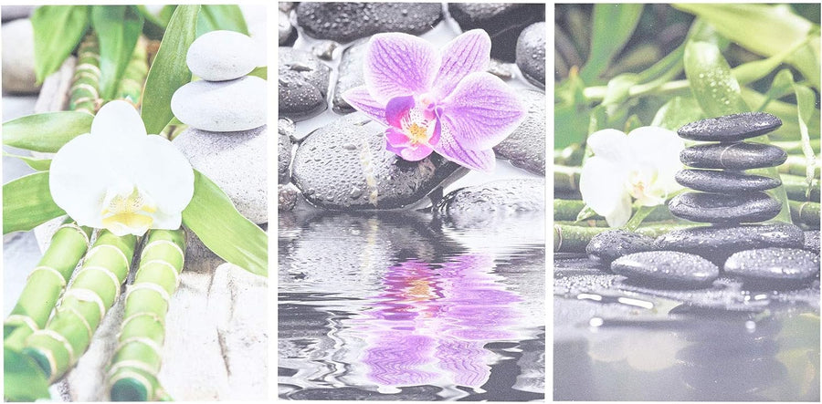 3er Set Wandbild je 30x20cm Leinwand Orchideen Bambus Wellness Deko Wanddeko Keilrahmen, Leinwand