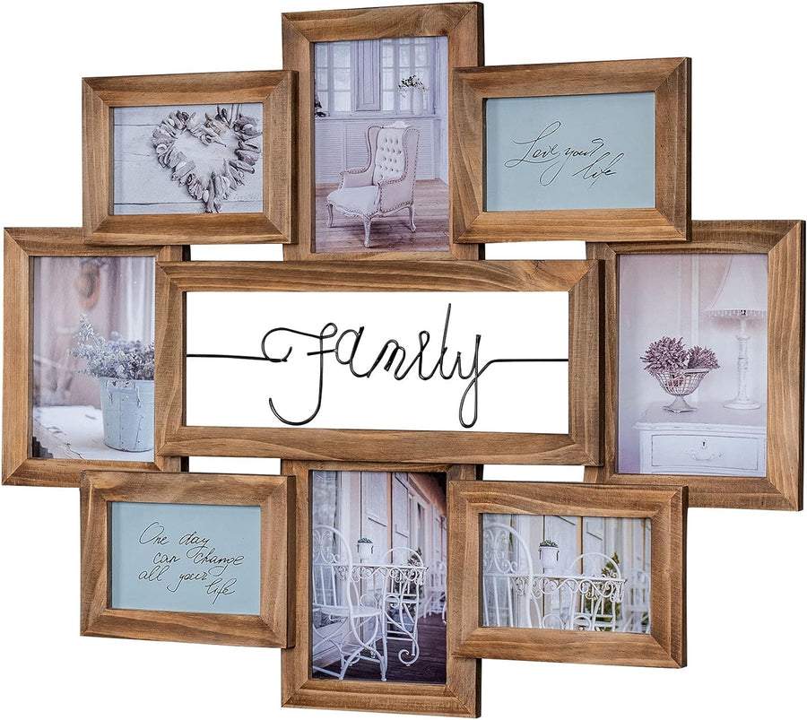 Bilderrahmen 68x56cm 8 Fotos Family 10x15 13x18 Echtholz Braun Fotorahmen Shabby Chic Vintage Collag