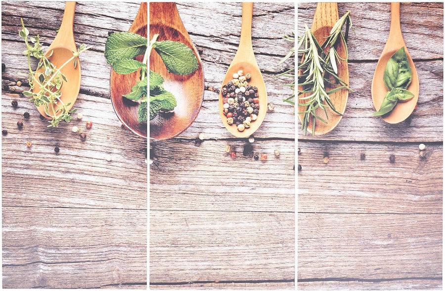 3er Set Wandbild 90x60cm Aluminium Dibond Gewürze Kräuter Löffel Küche Deko Wanddekoration Aluschild