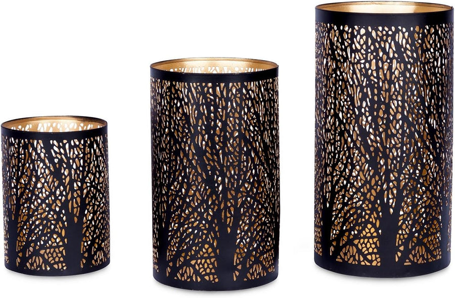 3er Set Windlichter Metall Schwarz Gold Kerzenhalter Deko Laterne Design