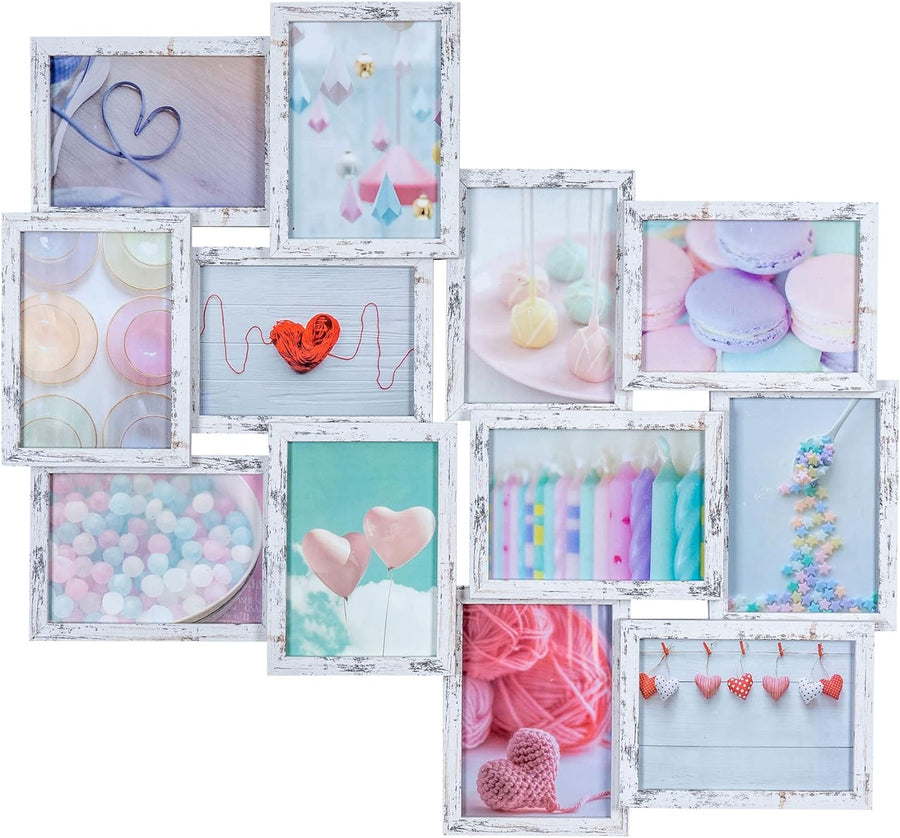 Bilderrahmen 70x65cm Collage 12 Fotos 13x18 Shabby Chic Vintage MDF Holz Galerie Fotorahmen Bilderra