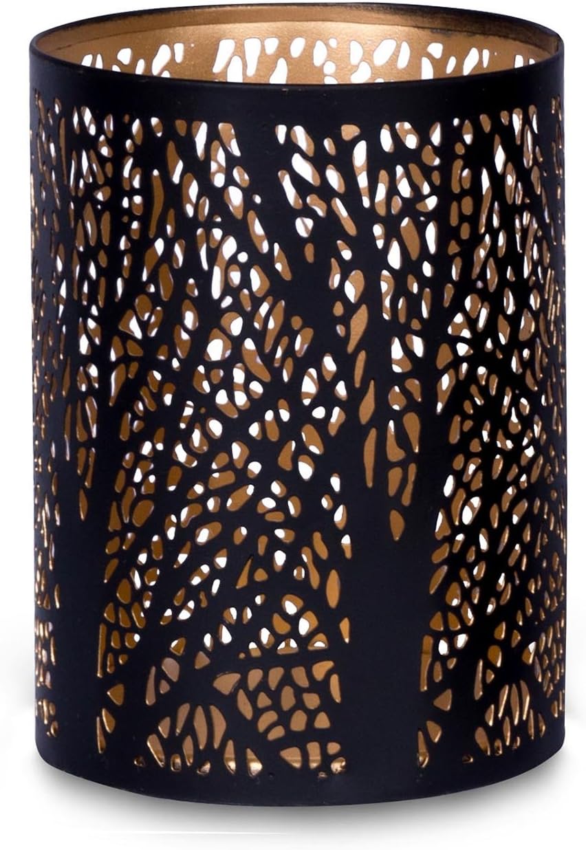2er Set Windlicht 13x18cm Schwarz Gold Metall Teelichthalter Blattdekor Blumendekor Tischdeko Indust
