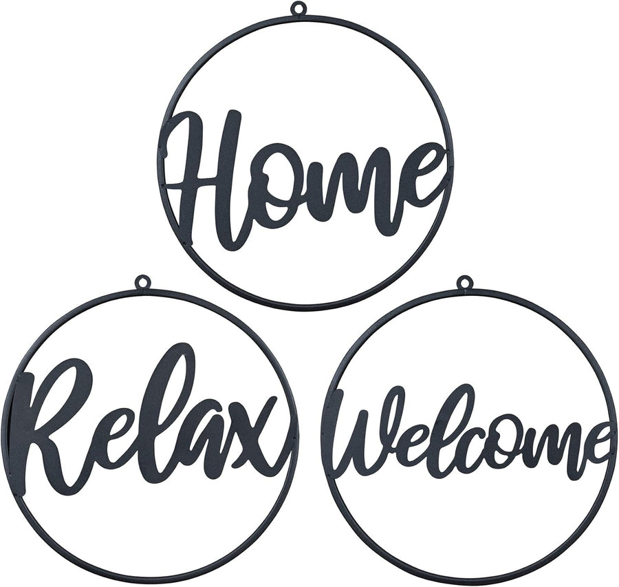 3er Set Metallbild Ø38cm Schwarz Welcome Home Relax Wandbild Rund Schild Wanddeko Metallschild Varia