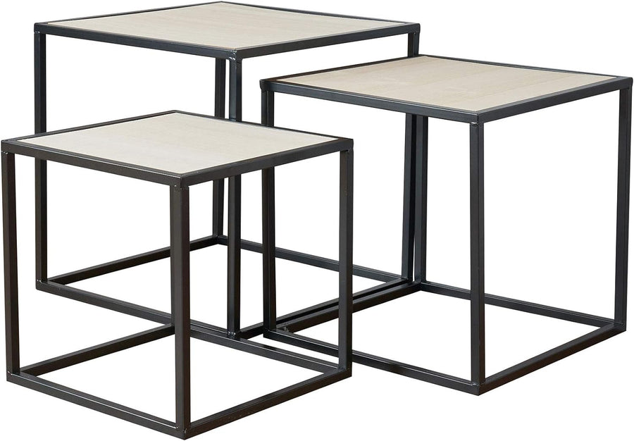 levandeo 3er Set Beistelltisch Metall Schwarz Holz Cube quadratisch Couchtisch Industrial Design Dek