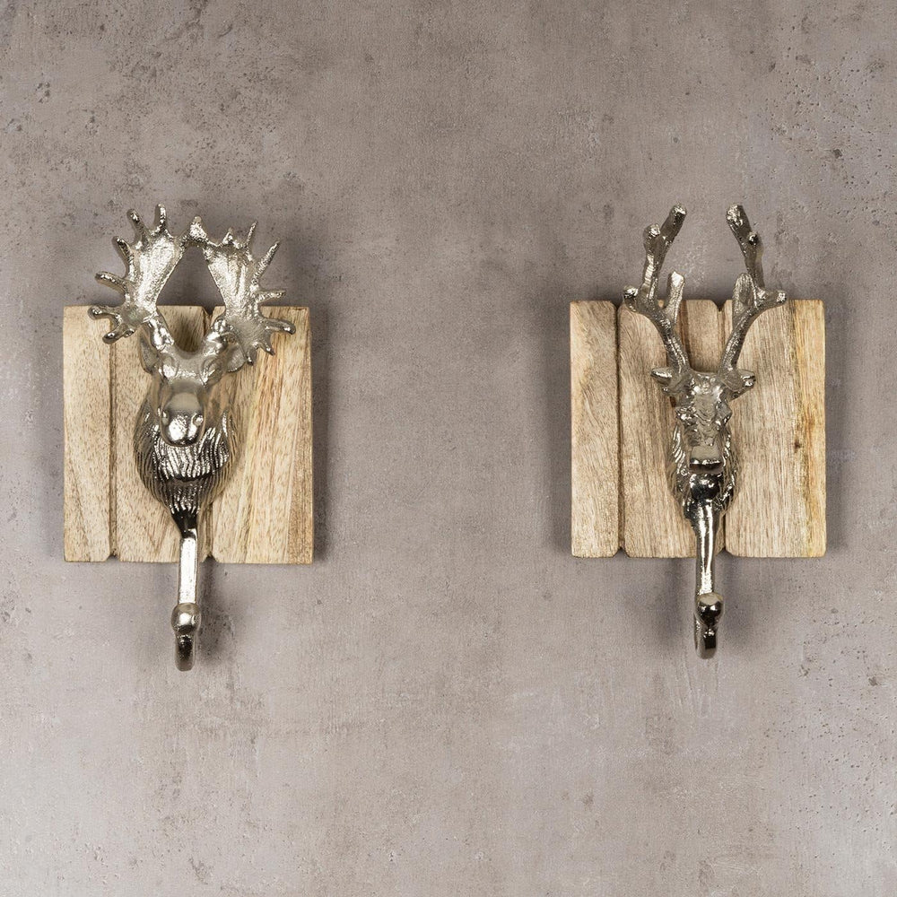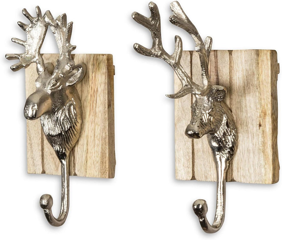 2er Set Wandhaken Hirsch H x B: 23x12cm Edel-Holz Metall Garderobe Deko Wanddeko Kleiderhaken Varian