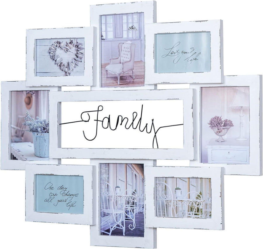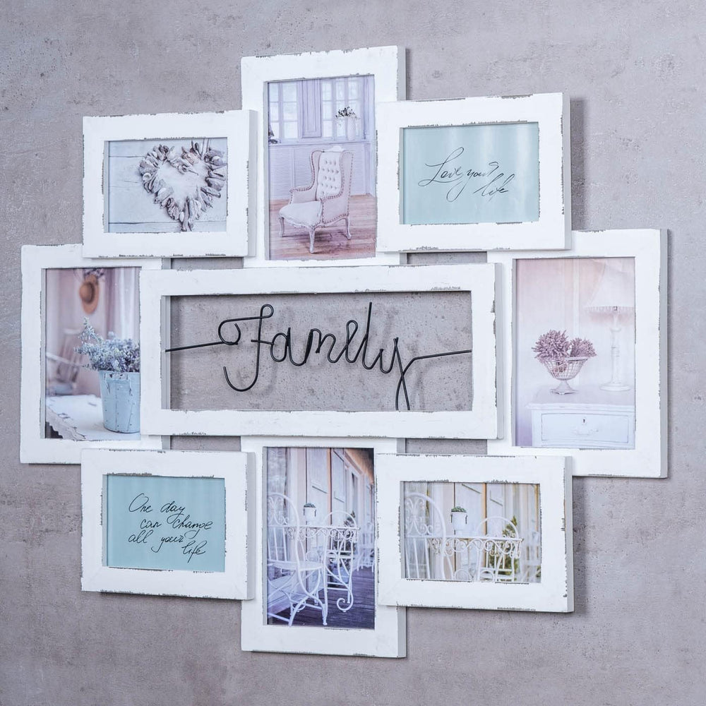 Bilderrahmen 68x56cm 8 Fotos Family 10x15 13x18 Echtholz Weiss Fotorahmen Shabby Chic Vintage Collag