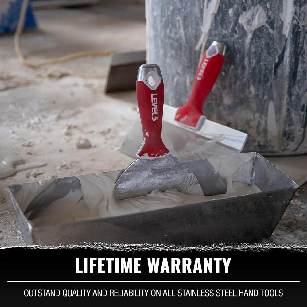 Trockenbau-Handwerkzeug-Set, Edelstahl - LEVEL5 | Fugen-/Tapiermesser + 35,6 cm Schlammpfanne | Soft
