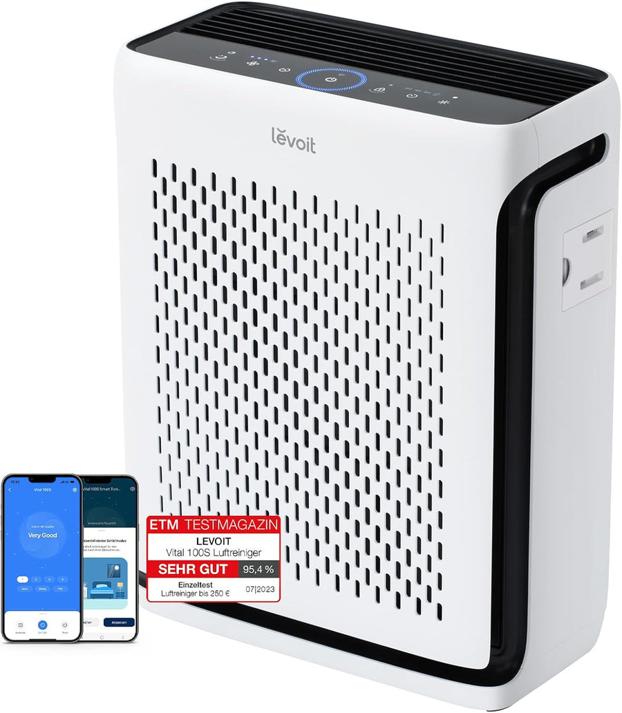 Levoit HEPA Luftreiniger mit 5 Sensoren, Luftfilter gegen 99,97 Prozent Schimmel Staub Pollen, Echtz