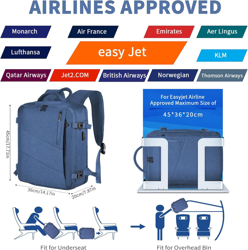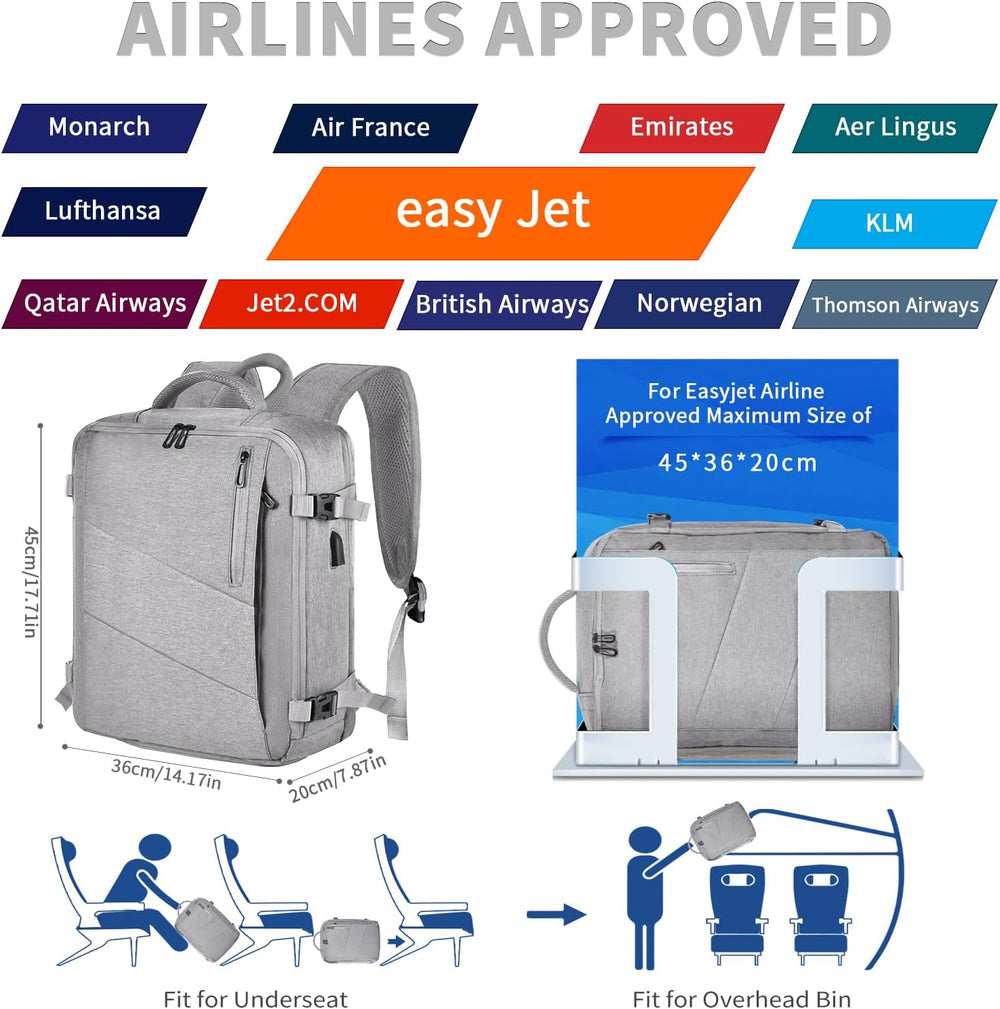Leyrica Handgepäck Rucksack 45x36x20 für Easyjet, Reiserucksack Tasche Wasserdichter Flugzeug Reiset